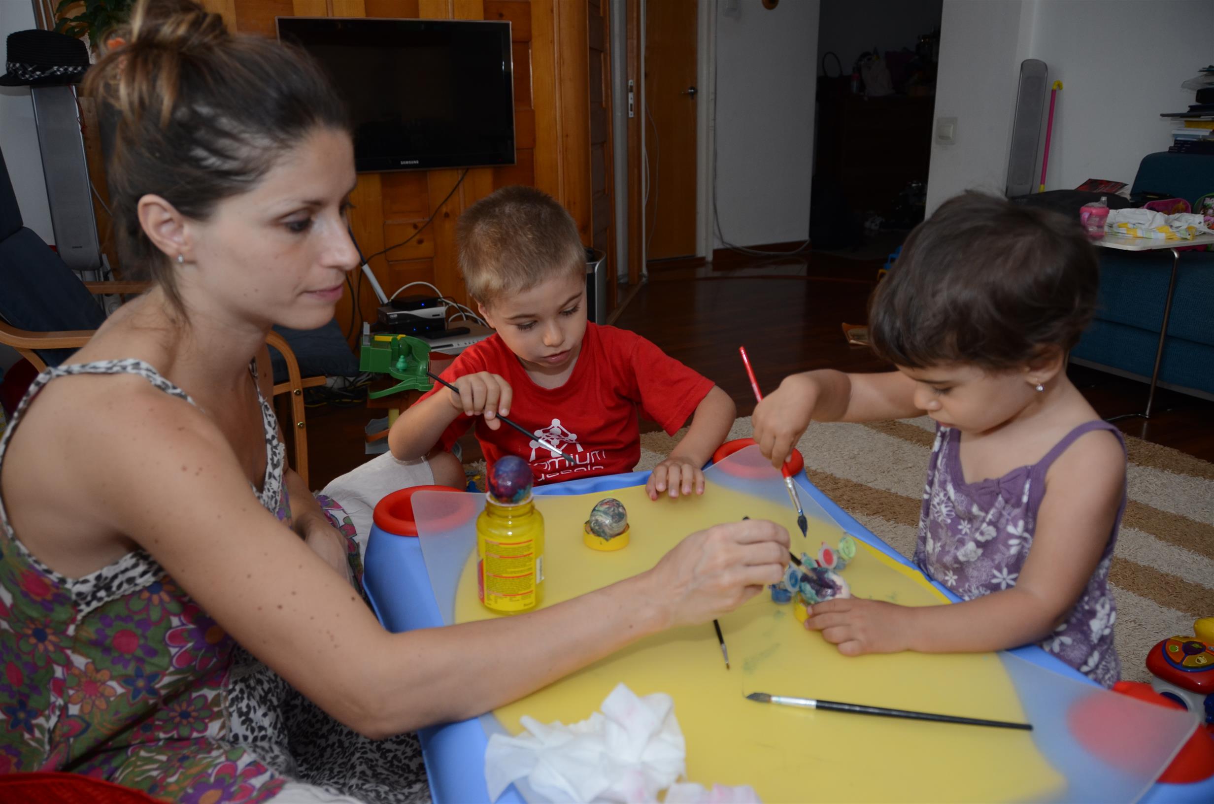 Mai copiii vopsesc oua pentru Paste
